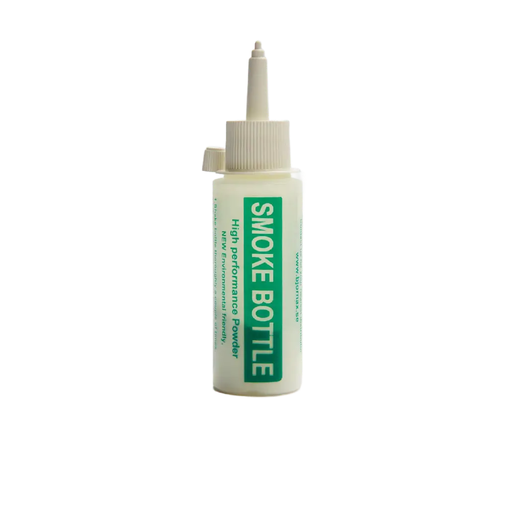 Björnax FP-Smoke 202 är en professionell rökflaska som producerar ren, vit och kloridfri rök – perfekt för att visualisera luftflöden, upptäcka läckage och genomföra funktionskontroller i ventilations- och luftbehandlingssystem.