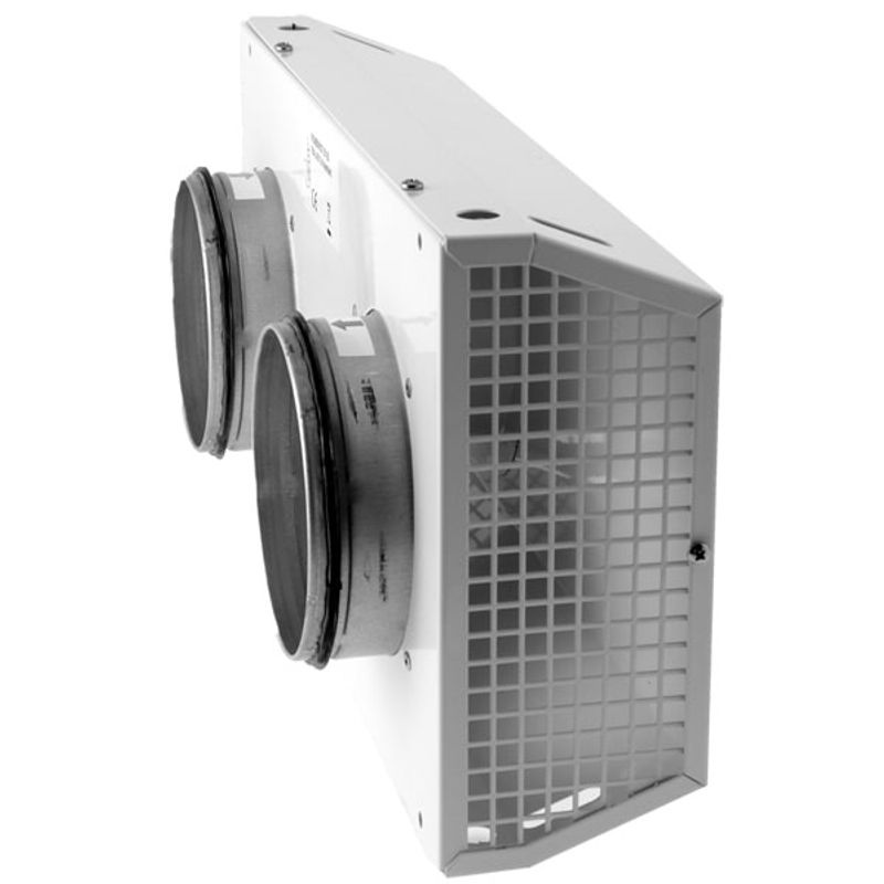 Via ett trådnätsgaller i donets bägge sidor tas uteluften in utan att det blandas med gammal luft.Combidon 125 vit förhindrar kortslutning mellan avluft/uteluft samtidigt som risken för vattenmedryckning på uteluften effektivt förhindras.