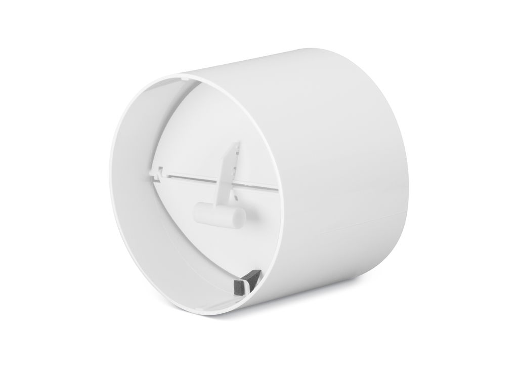Backspjäll som förhindrar att luft tränger in när fläkten är avstängd. Utvändig diameter Ø98 mm och längd 74 mm. Monteras i kanal Ø98 mm. Vid större kanaldiameter kan packning användas alternativt tejpas kallrasskyddet direkt på fläkten.