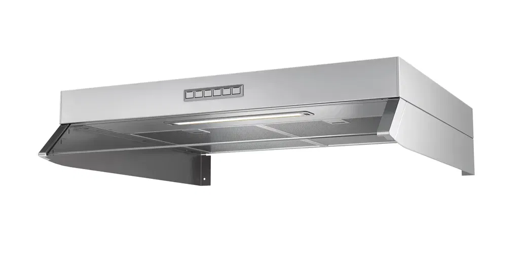 Osuppfång > 75% vid 50 l/s placerad 60 cm över hällen (EN 13141-3:2017) Utrustad med transformator för att kunna styra hastigheten på fläktar med AC-motor. LED-belysning, aluminiumfilter och timerreglerat spjäll, 60 min. Förlängd timer 30 min.