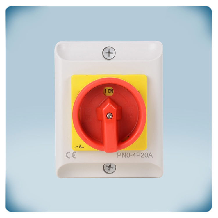 Ställverket är inrymt i ett gjutet hölje med IP65-tätning. Denna brytare har 2 poler.