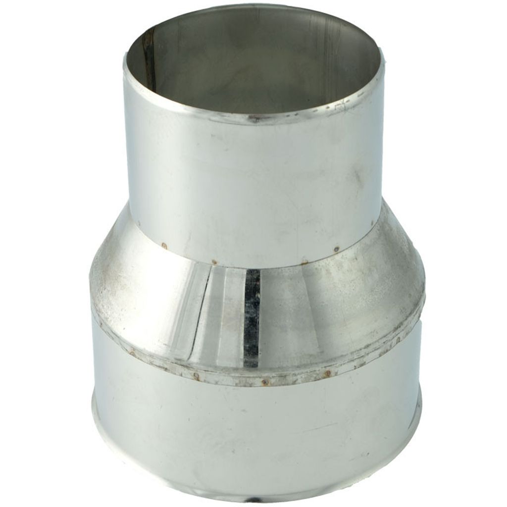 Övergång från kassettinsats till insatsrör. Passar kassettstos med ytterdiameter 160 och insatsrör med dimension 125. Skarvarna pop-nitas med rostfri blindnit och tätas med brandfogmassa.