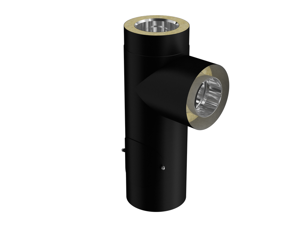 Landy Facil T-rör 90° är en viktig komponent i Landy Facil modulskorstenssystem och används ofta för att bakansluta en eldstad till skorstenen samtidigt som det möjliggör sotning och inspektion genom sin sotlucka. T-röret skapar en 90 graders anslutning mellan den horisontella rökgaskanalen från kaminen och den vertikala skorstenen.
