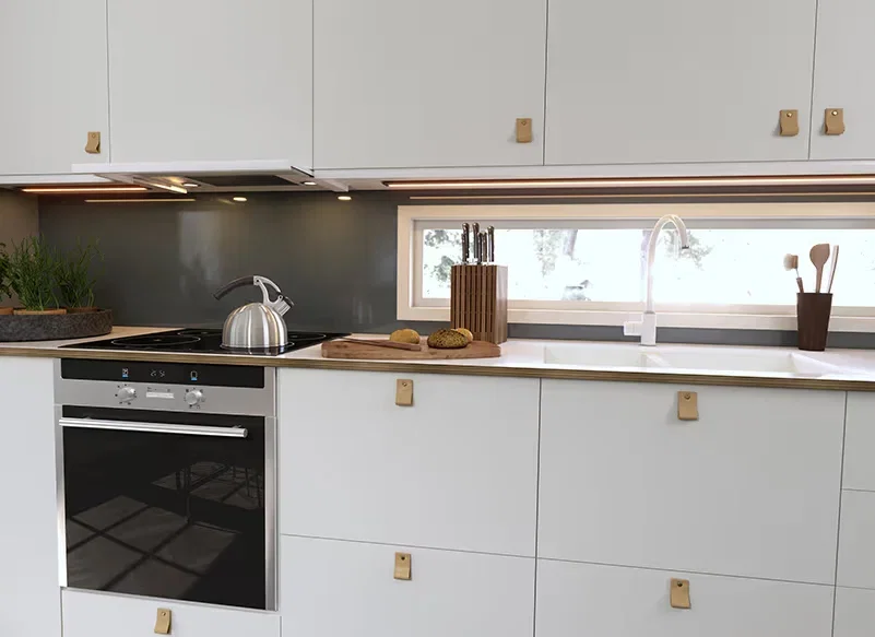I inskjutet läge är endast den vita frontlisten synlig. Frontlisten är dessutom löstagbar och kan vid behov ersättas med lister i aluminium eller rostfritt stål (säljs som tillbehör) för att matcha just ditt kök. Spiskåpan är utrustad med kraftfull LED-belysning som ger ett klart och behagligt ljus över hela arbetsytan vid spisen.