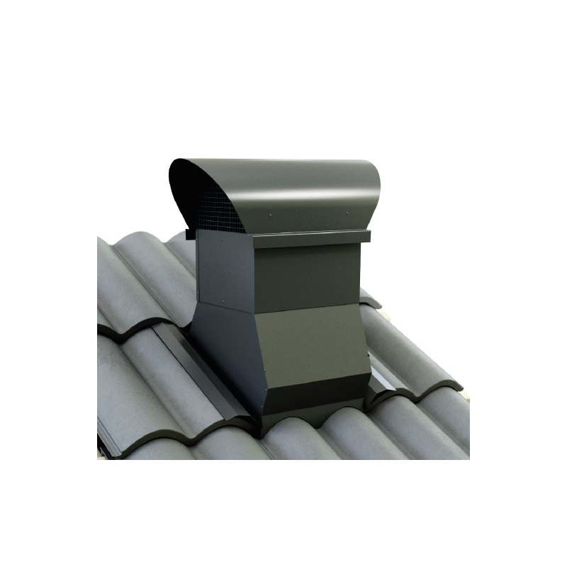 Takhuv 125/160 isolerad svart är en takhuv utformad för standard 2-kupiga betongpannor. Takhuven är till för vanlig ventilation eller imkanal som är isolerad med stenull. Anslutningsdimension 160mm men reduktion 160-125 medföljer om man har en 125mm ventilationskanal.