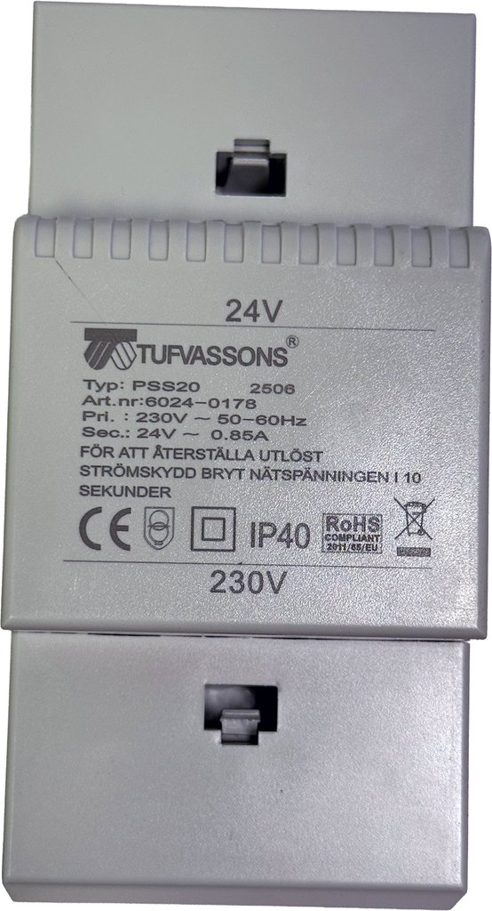 Beskrivning av Transformator Systemair 24V/PSS20 202692